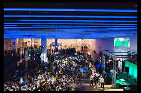 The DHub is located in the Glòries neighborhood, an area that has been undergoing renewal over the past decade, with the Glòries Tower by Jean Nouvel (formerly Torre Agbar) and the new Encants flea market.